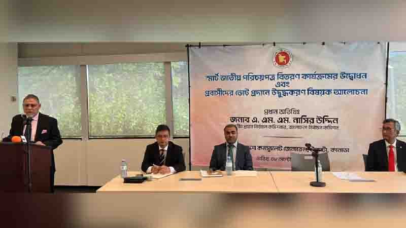 ৯ সেপ্টেম্বর ২০২৫ তারিখে কানাডার টরন্টোতে বাংলাদেশ কনস্যুলেট জেনারেল আয়োজিত ‘স্মার্ট জাতীয় পরিচয়পত্র বিতরণ ও প্রবাসীদের ভোটে উদ্বুদ্ধকরণ’ শীর্ষক আলোচনা অনুষ্ঠানে প্রধান অতিথি হিসেবে উপস্থিত ছিলেন সিইসি নাসির উদ্দিন। অনুষ্ঠানে তিনি প্রবাসীদের ভোটার নিবন্ধন ও আসন্ন জাতীয় সংসদ নির্বাচনে ভোট প্রদানের প্রক্রিয়া বিস্তারিতভাবে ব্যাখ্যা করেন। এছাড়া স্মার্ট জাতীয় পরিচয়পত্র বিতরণ কার্যক্রমের উদ্বোধন করেন।